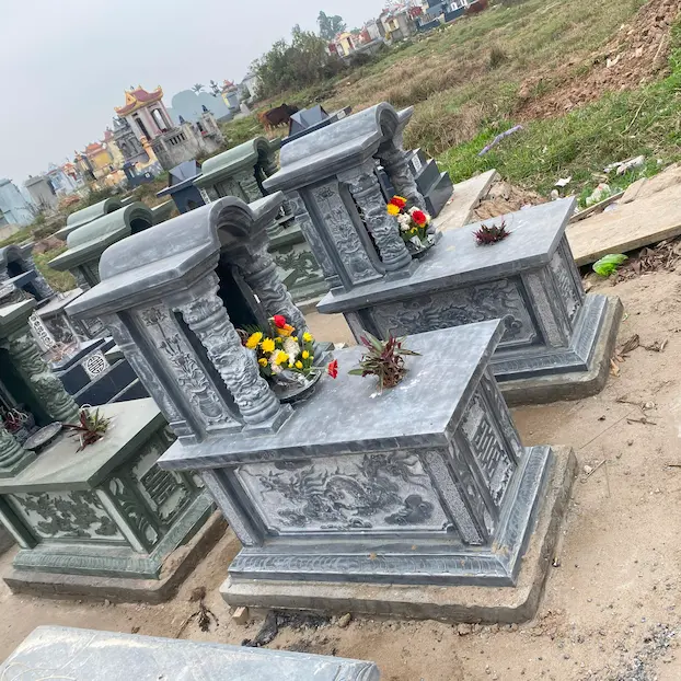 Mộ Mái Vòm Đá Đen (61x117cm) là mẫu mộ đá sang trọng, được chế tác từ đá đen tự nhiên với độ bền cao. Thiết kế mái vòm uốn cong tạo nên vẻ uy nghiêm, trang trọng. Kích thước 61x117cm phù hợp với nhiều khu lăng mộ. Mẫu mộ này không chỉ bảo vệ lâu dài mà còn thể hiện lòng tôn kính đối với tổ tiên. Chất liệu đá đen chống chịu tốt với thời tiết, giữ mộ luôn bền đẹp.